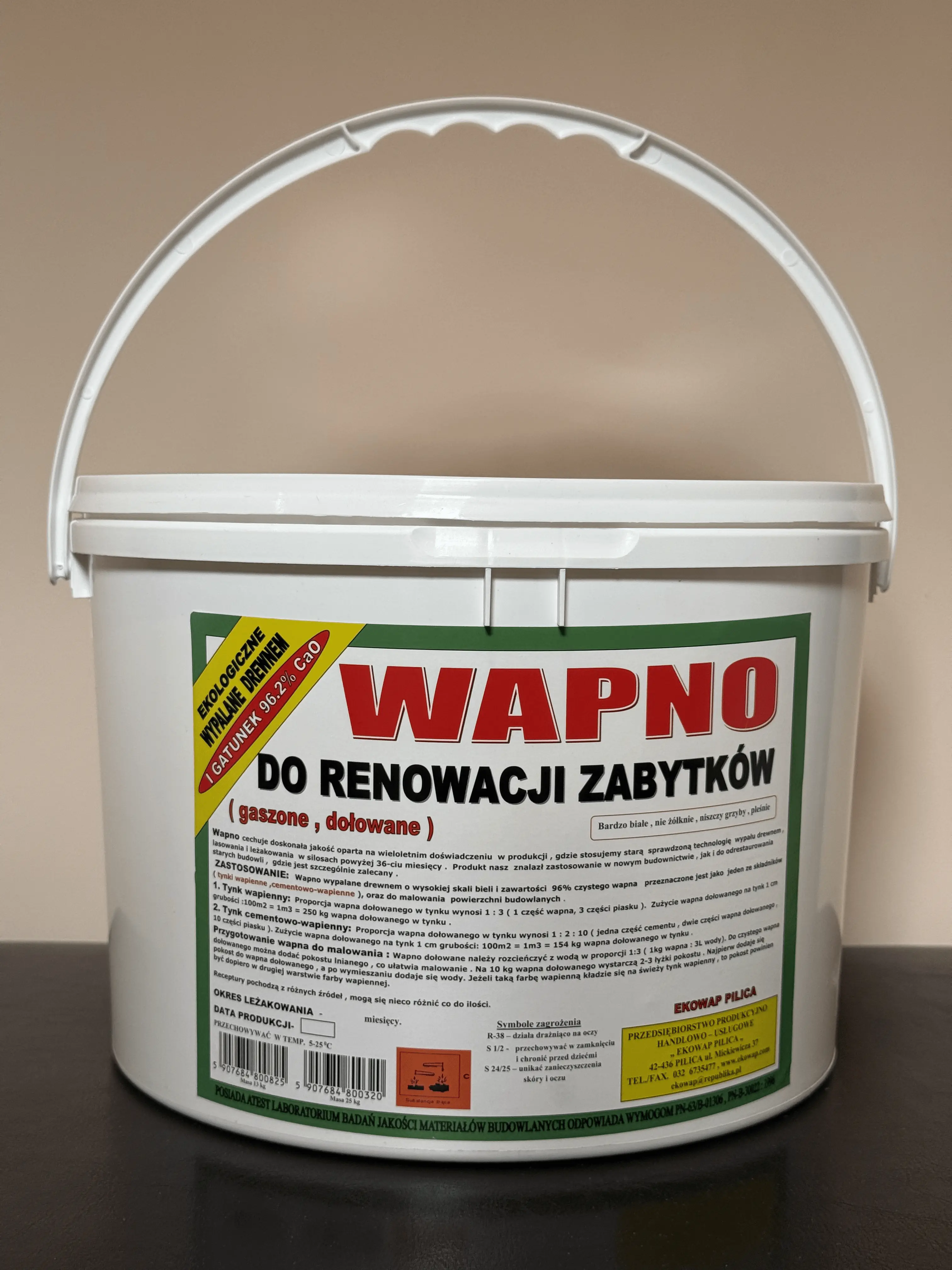 Wapno do renowacji zabytków EKOWAP to produkt unikalny w skali kraju, powstający w oparciu o proces długotrwałego leżakowania (minimum 36 miesięcy) w specjalistycznych silosach. Tradycyjna technologia wypału drewnem pozwala uzyskać produkt o niezwykłej plastyczności i czystości chemicznej, niezbędny do odtwarzania historycznych zapraw tynkarskich i murarskich.
